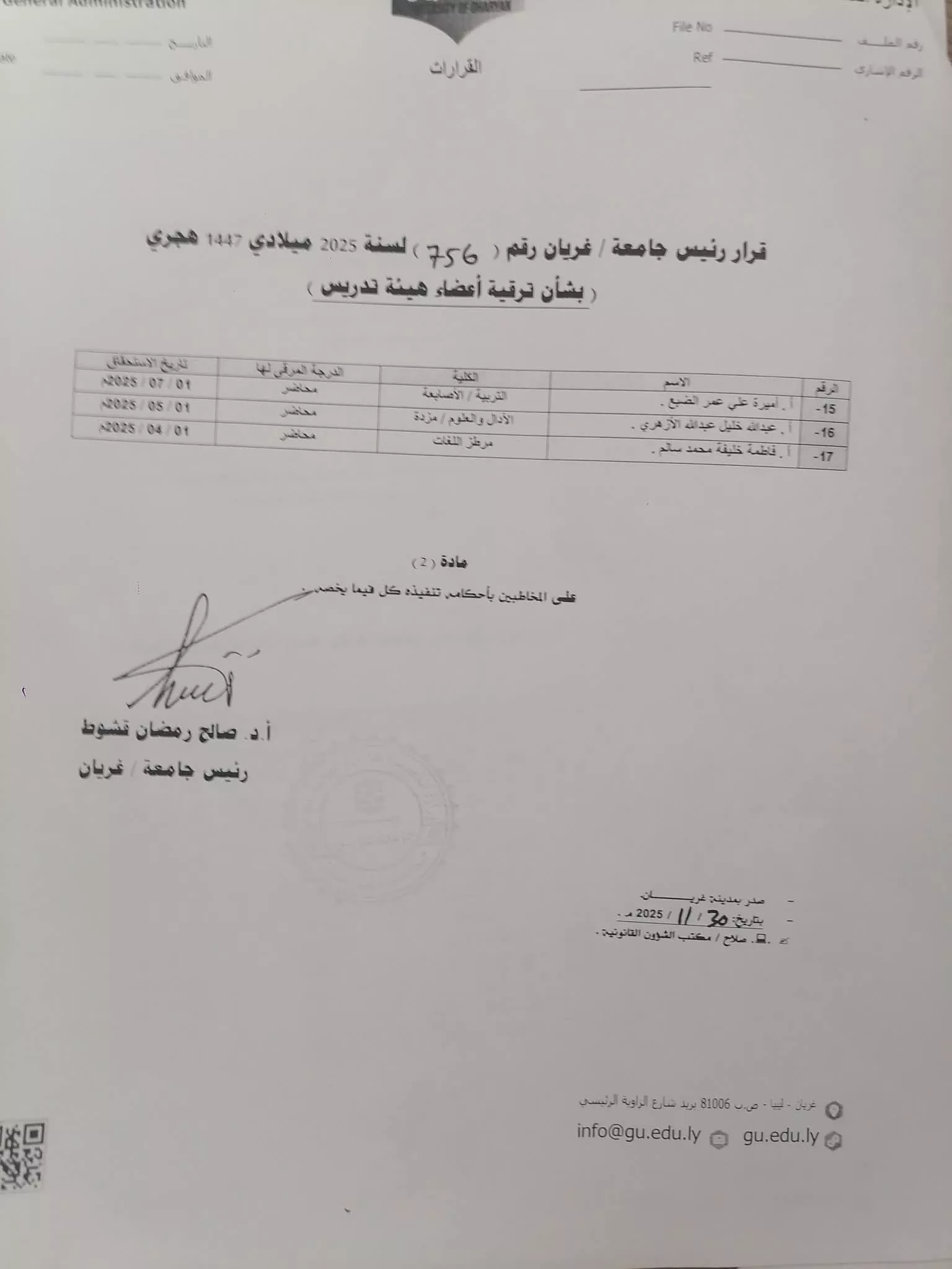 نبارك للسادة أعضاء هيئة التدريس صدور قرار أ.د.رئيس الجامعة #بترقيتهم.