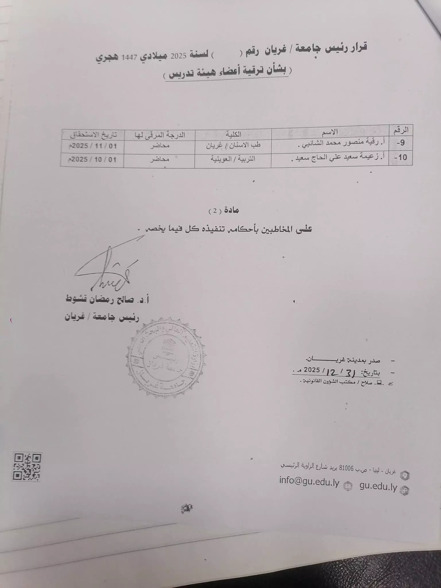 We congratulate the esteemed faculty members on the issuance of the decision by Prof. Dr. University President #to promote them.